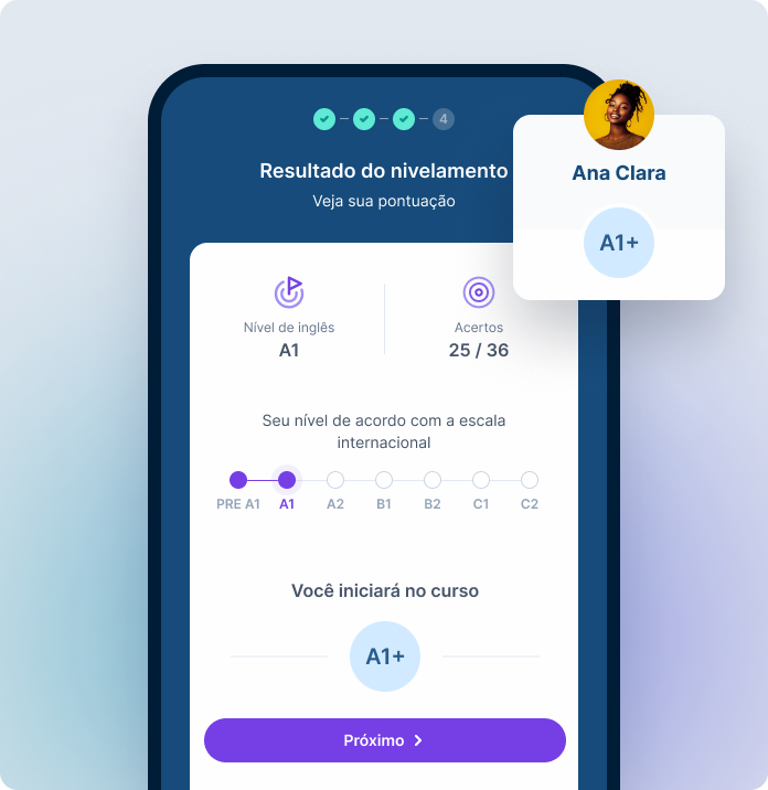 Cada aluno inicia com um teste de nivelamento e, ao concluir cada etapa (A1, A2, B1…), recebe sua certificação de proficiência.